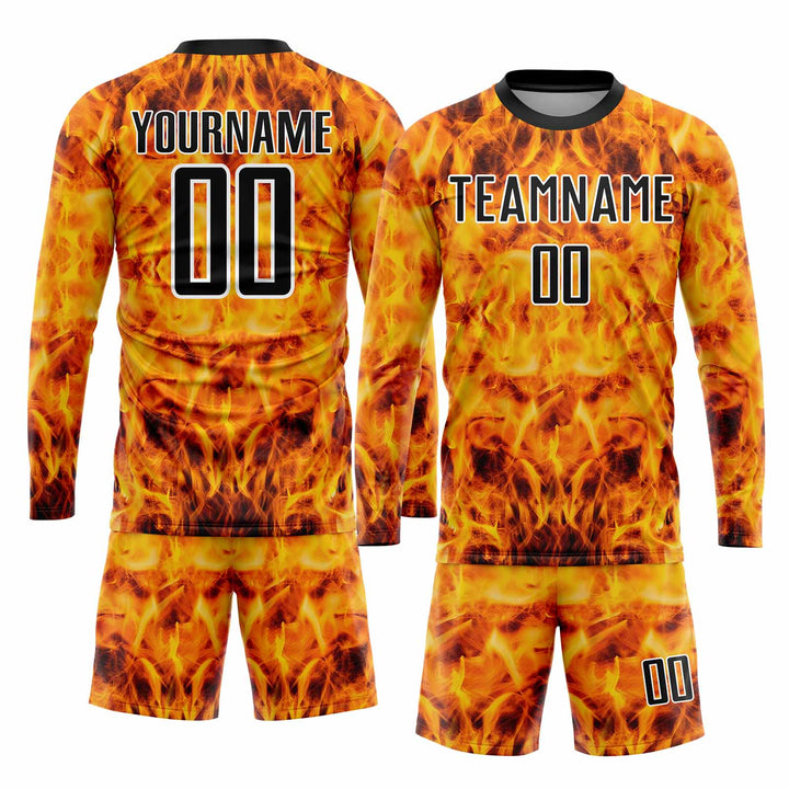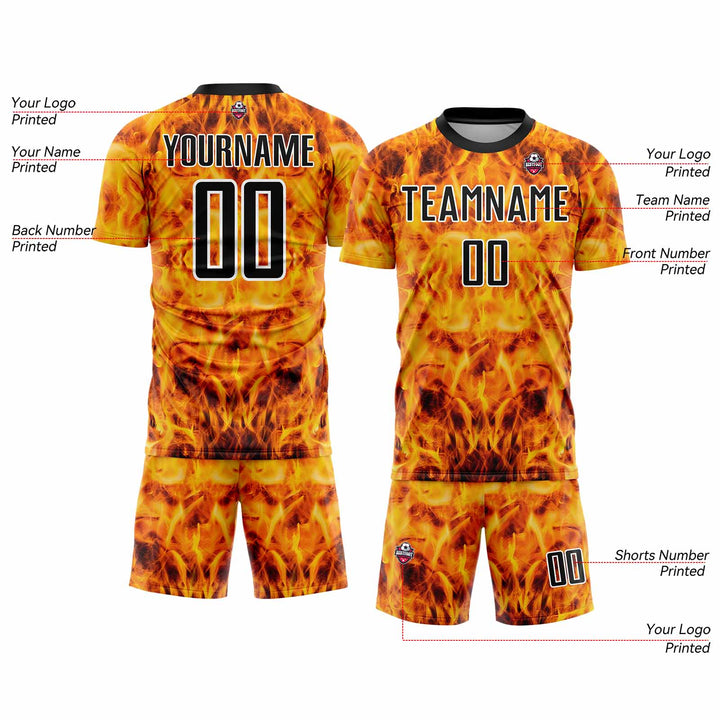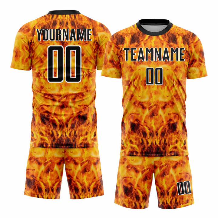 Custom Yellow Black-White Flame Classic Uniform Training Sets Soccer Jersey For Adults/Kids