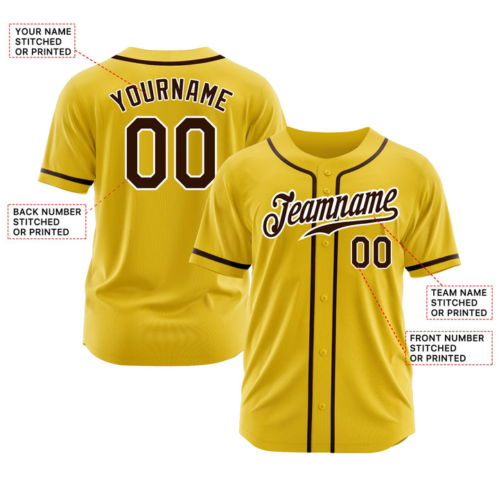 Custom Yellow Brown-White Classic Style Authentic Sports Baseball Jersey