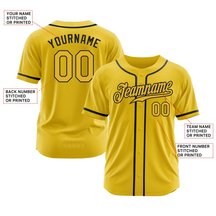 Custom Yellow Gold-Black Classic Style Authentic Sports Baseball Jersey