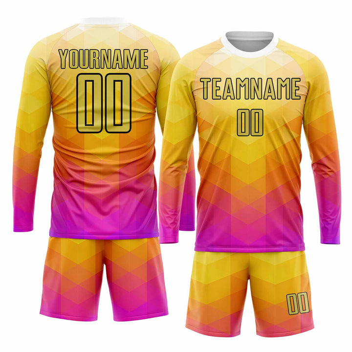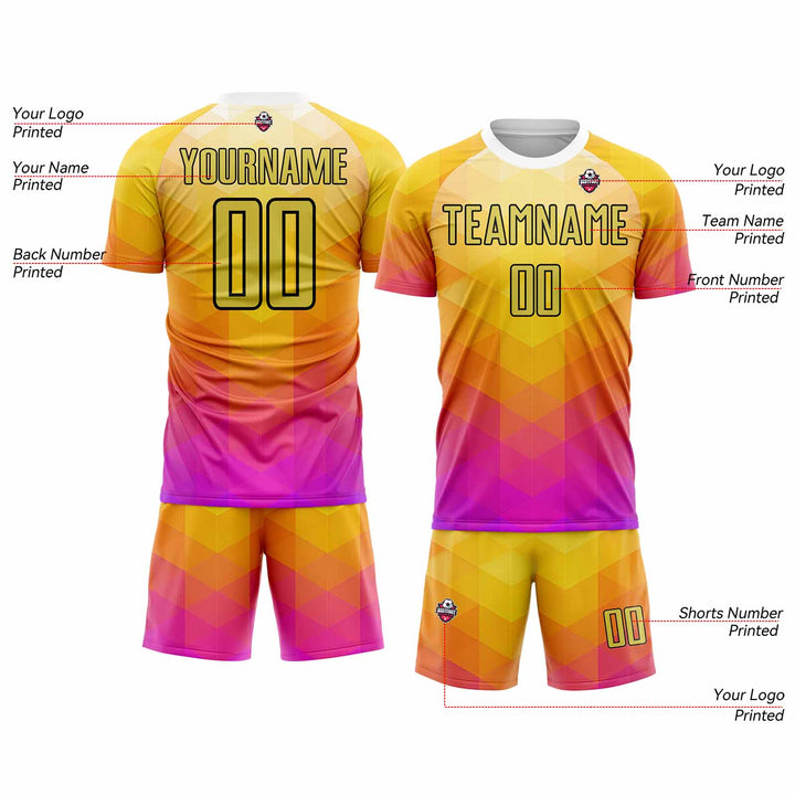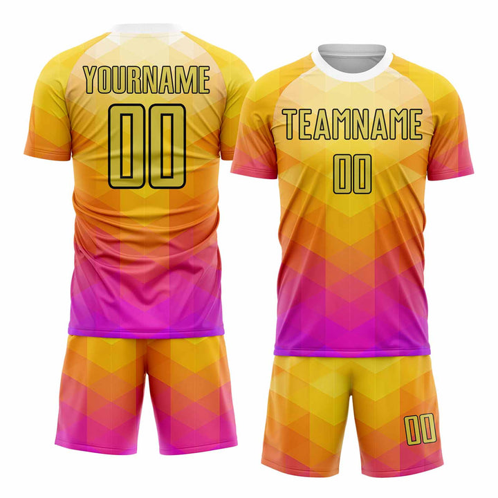 Custom Yellow Hot Pink-Black Geometric Shapes Classic Uniform Training Sets Soccer Jersey For Adults/Kids
