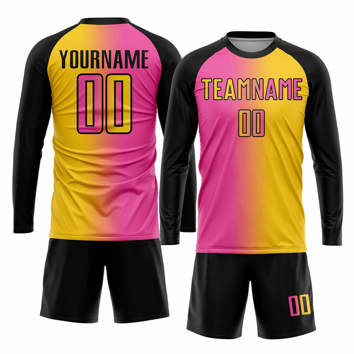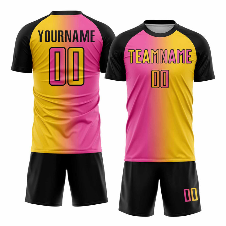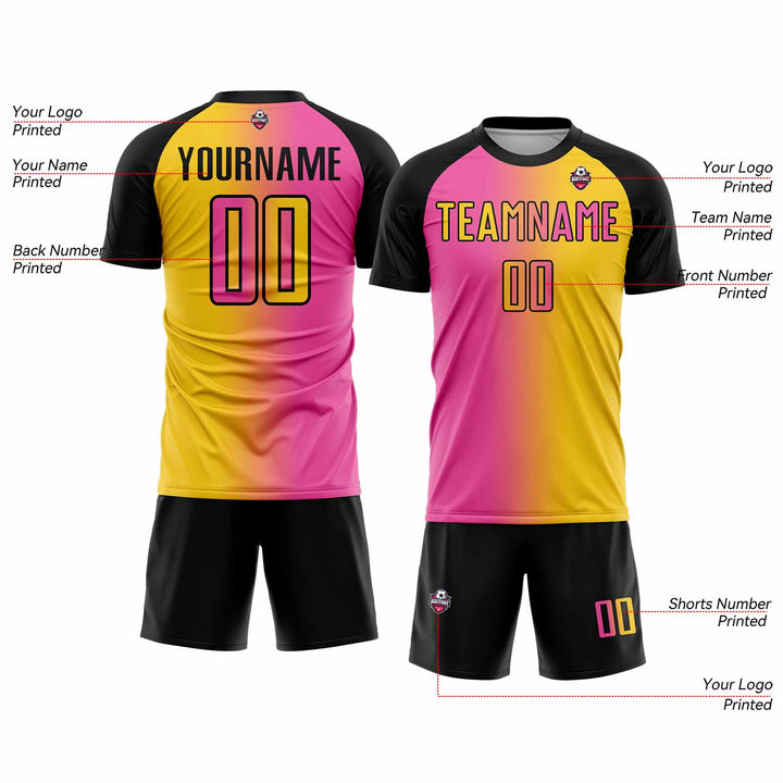 Custom Yellow Pink-Black Classic Uniform Training Sets Soccer Jersey For Adults/Kids