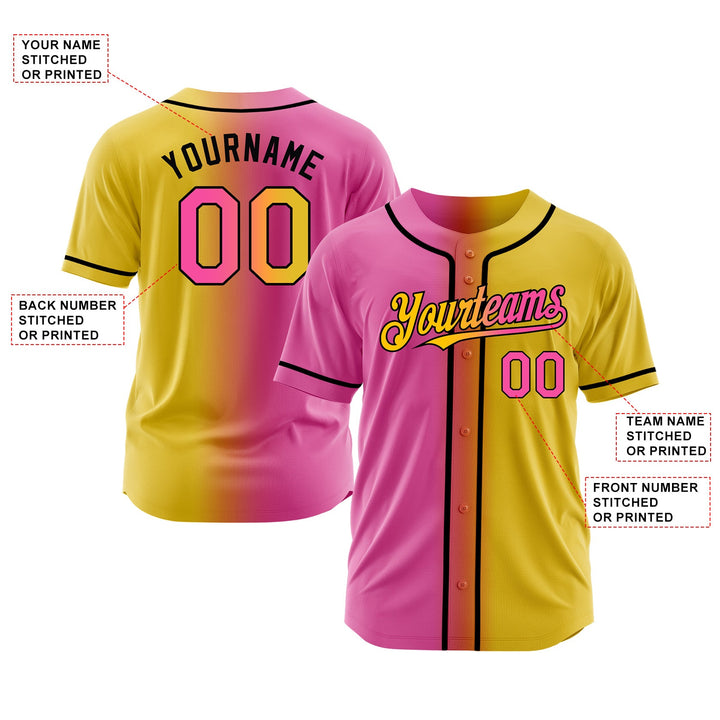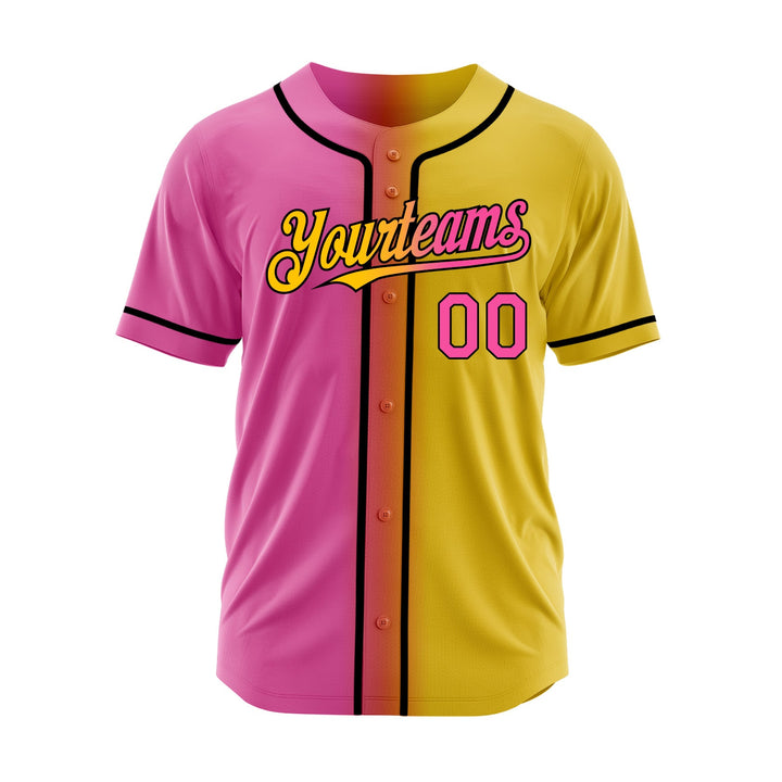 Custom Yellow Pink-Black Gradient Fashion Classic Style Authentic Sports Baseball Jersey