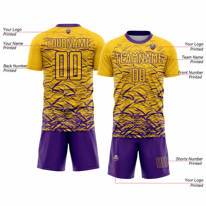 Custom Yellow Purple Classic Uniform Training Sets Soccer Jersey For Adults/Kids