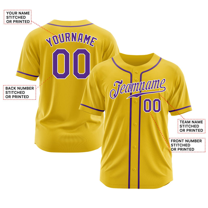 Custom Yellow Purple-White Classic Style Authentic Sports Baseball Jersey