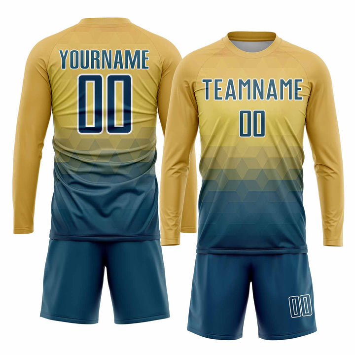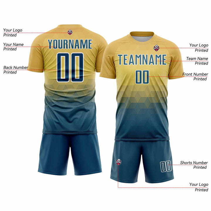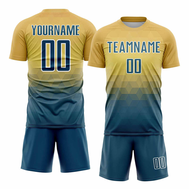 Custom Yellow US Navy Blue-White Geometric Triangle Classic Uniform Training Sets Soccer Jersey For Adults/Kids